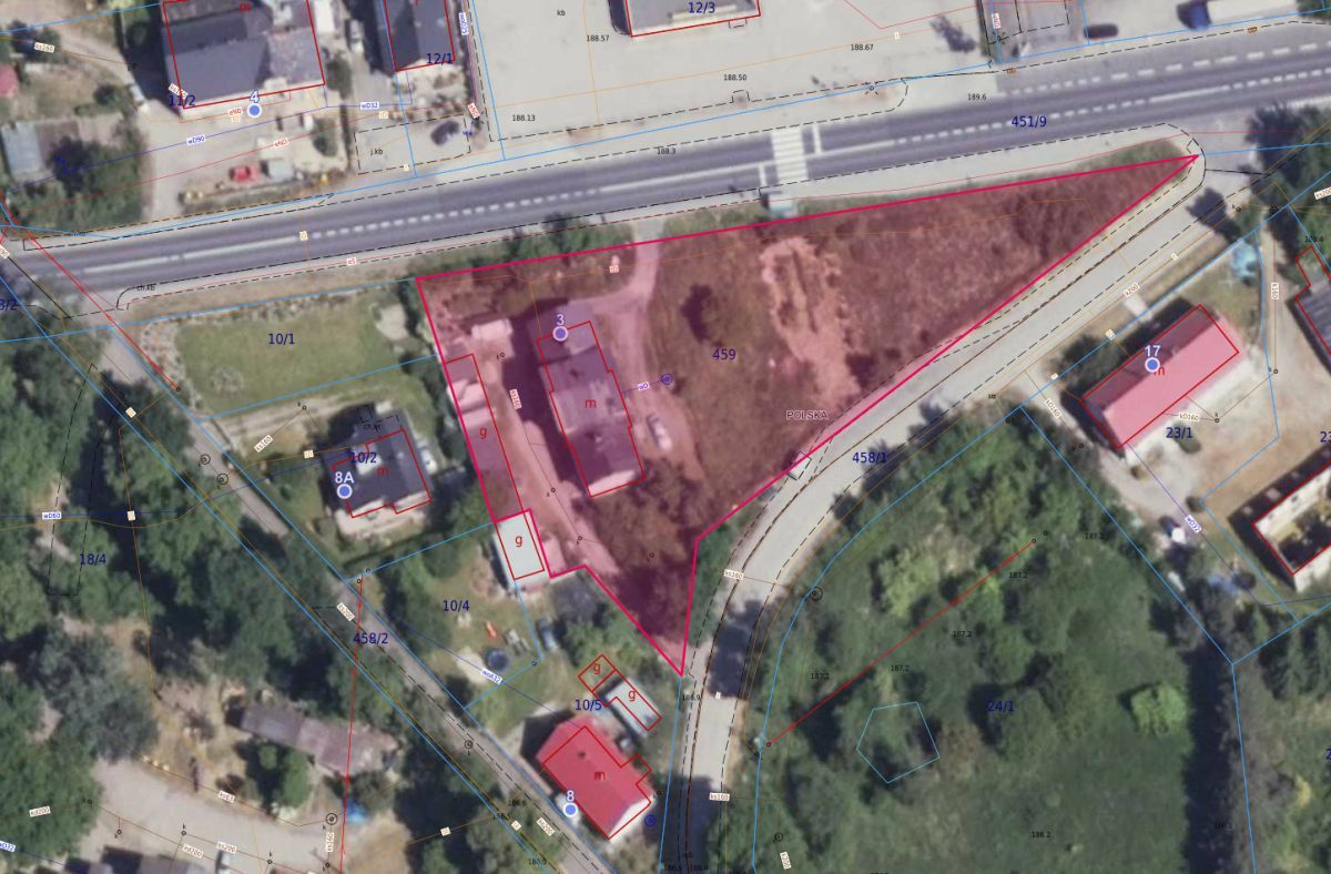 Działka o numerze 459- symbol w planie MNU - teren zabudowy mieszkaniowo-usługowej.